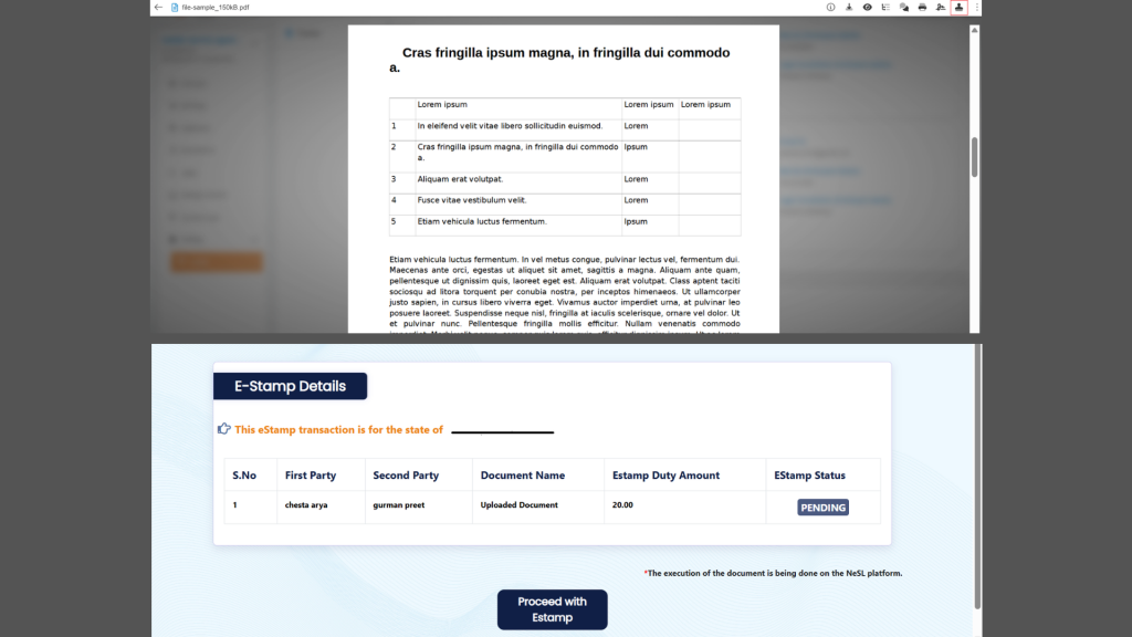 We have implemented an E-Stamping Integration on the platform to make the process of procuring and attaching e-stamps simpler and faster for users. With this new functionality, the platform is integrated with third-party vendor APIs, allowing users to generate, approve, and attach e-stamps directly while creating documents without leaving the system. The integration supports both financial and non-financial e-stamping services and offers flexibility through online and offline issuance options. In the online mode, users can generate and retrieve approved e-stamps in real time through API calls during document creation, enabling instant availability of the required stamp. In offline scenarios, users can submit the necessary details through the platform. The vendor then processes the request, and the issued e-stamp is received and integrated into the system for use. Earlier, the platform did not provide direct e-stamping capabilities, which required users to manually procure e-stamps from external vendors, download the PDF copies, and then upload them back to the platform to attach them to their documents, making the process time-consuming and less efficient. With this new enhancement, the entire e-stamping workflow is streamlined within the platform, reducing manual effort, saving time, and providing a smoother and more efficient document management experience for users.