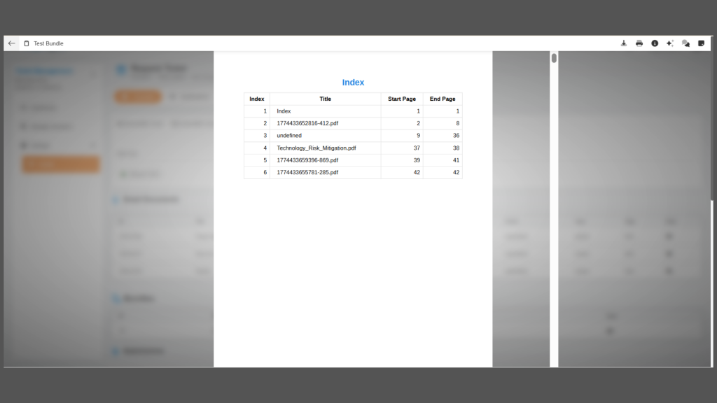 We have implemented a comprehensive Bundle Management feature that enables users to organize, manage, and interact with multiple files and smart documents as a single structured bundle at the Blueprint event level. Through the Bundle Blueprint Builder, users can define bundle structures by configuring elements such as title, short URL, document sequence, and file-level properties, including type, order, and optionality—where optional files are skipped if unavailable and mandatory files display placeholders. We have also introduced role-based annotator access to ensure controlled collaboration. Bundles can be accessed via a unified Bundle Viewer, which dynamically renders all documents into a seamless, single PDF view with built-in indexing and pagination for easy navigation, without storing the compiled file on the server. In addition, we have implemented file-level annotations, allowing users to add contextual feedback directly within files; these annotations are embedded within the file, remain restricted to its context, and are accessible even via short URLs. To enhance usability, we have provided an integrated side panel that enables annotation management, displays file information, and supports tools like Saya Agent and voice dictation, delivering a streamlined and collaborative document experience.